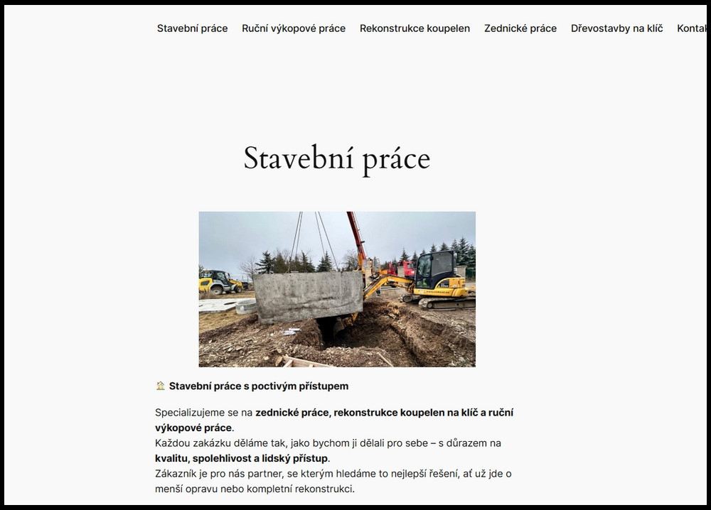 Důraz kladu na přehlednost, moderní vzhled a snadnou správu, aby web dobře sloužil vám i vašim zákazníkům.